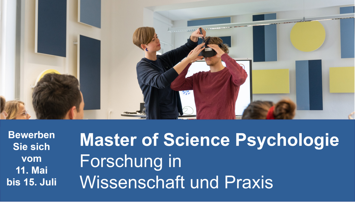 Der Masterstudiengang wurde zum Wintersemester 2023/24 eingeführt. Aufbauend auf dem BSc-Studiengang qualifiziert dieser konsekutive MSc-Studiengang für eine forschungsorientierte psychologische Tätigkeit in den Praxisfeldern Prävention und Gesundheitsversorgung, Bildungsforschung, Schulpsychologie/-diagnostik, sowie Beratung und Wissenschaftskommunikation.